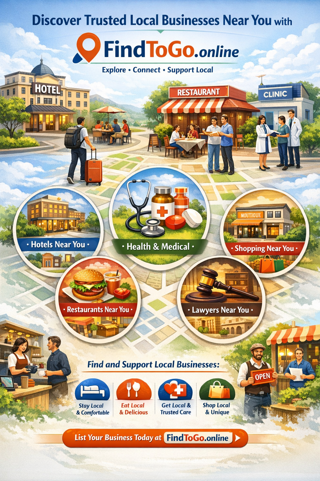 FindToGo is a comprehensive business listing platform connecting users with businesses locally and globally. Whether you're a professional, entrepreneur, or general user, FindToGo makes discovering services, companies, and professionals easy and efficient. Explore, connect, and grow your network with verified business listings on FindToGo.