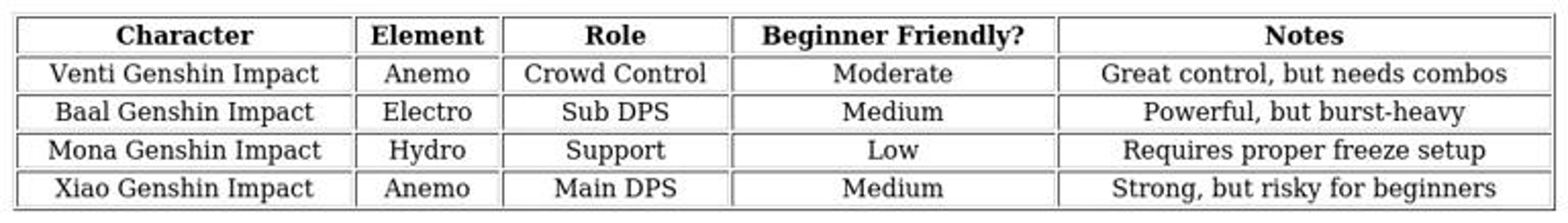 • Venti: Excellent crowd control, great for new players learning enemy patterns.