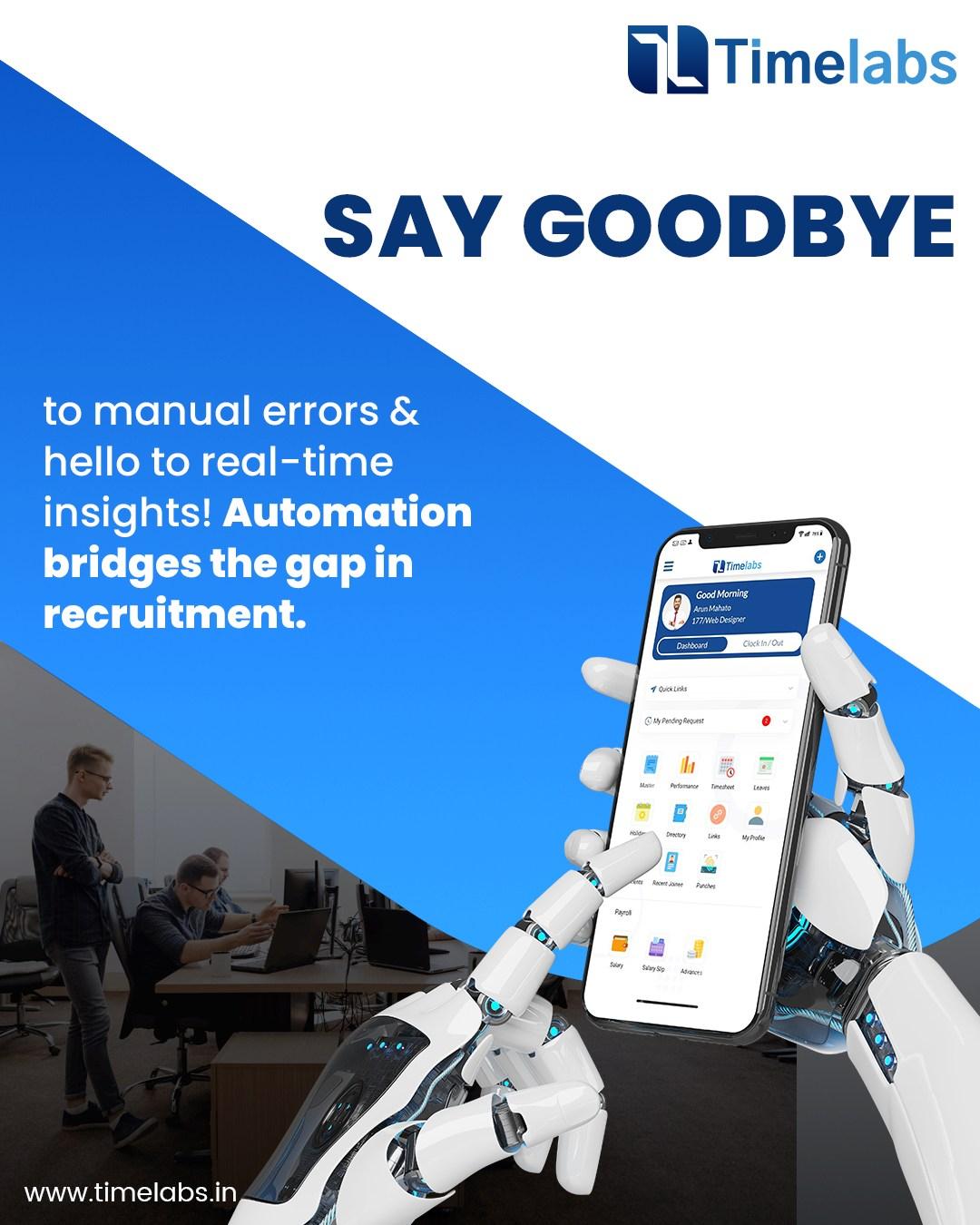 Recruitment Management Software by Timelabs helps businesses automate hiring workflows, reduce manual errors, and gain real-time recruitment insights. With smart automation, mobile access, and centralized candidate management, Timelabs improves hiring efficiency, saves HR time, and ensures faster, more accurate recruitment decisions for modern organizations. @ https://www.timelabs.in/recruiting-software